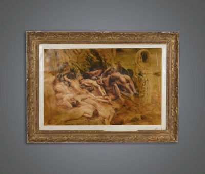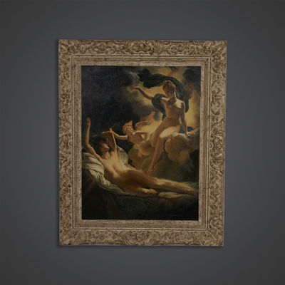 Tableau « Scène » Vénus, Satyre et Cupidon