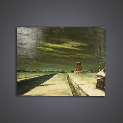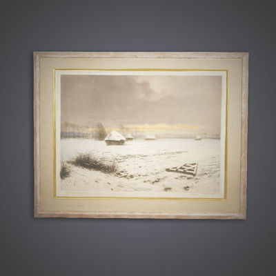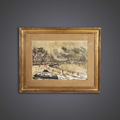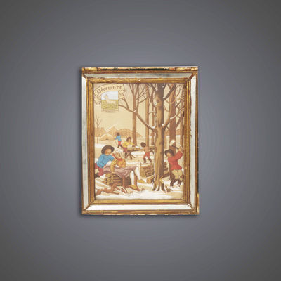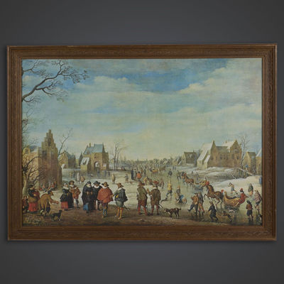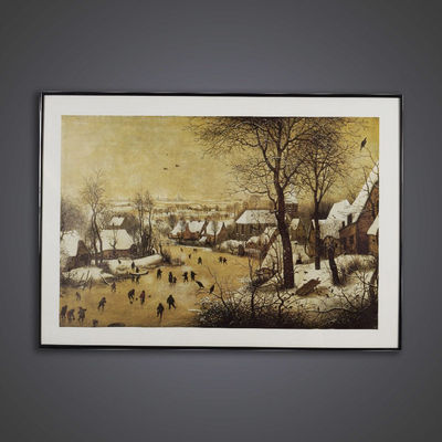 Paysage d'hiver avec patineurs et trappe aux oiseaux