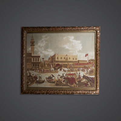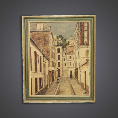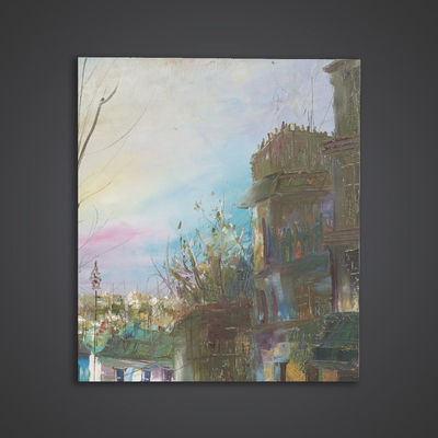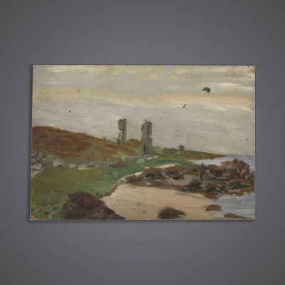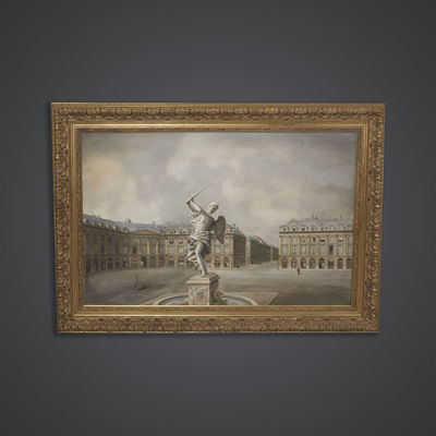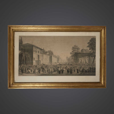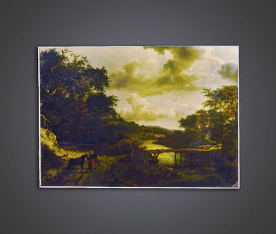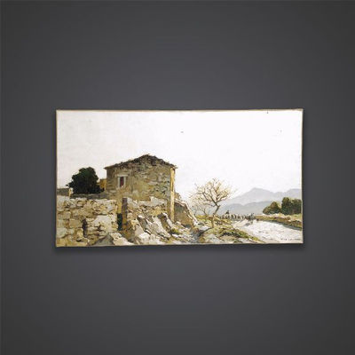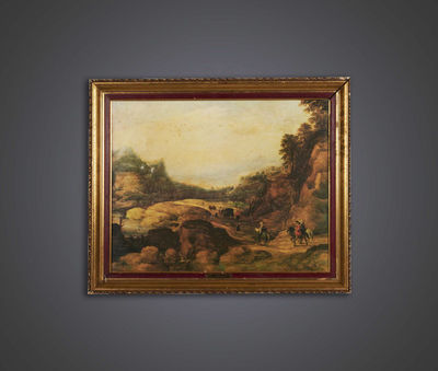 Tableau Cavaliers et calèche sur un chemin de pierre