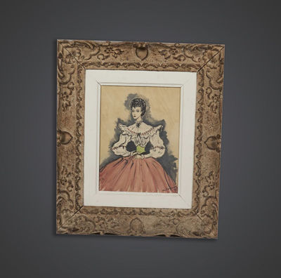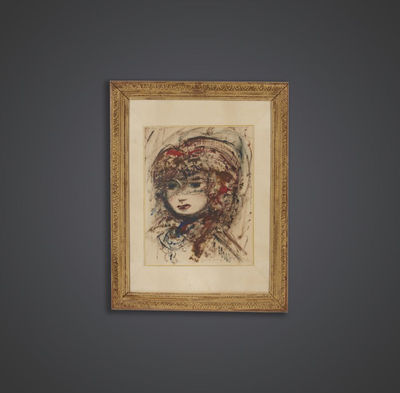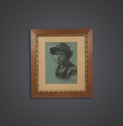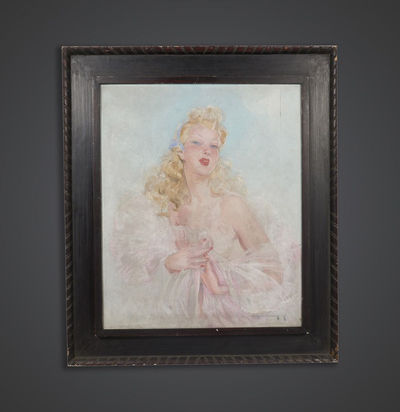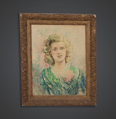 Tableau portrait femme 1940 pastel