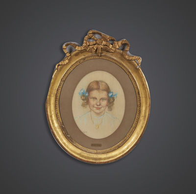 Portrait ovale jeune fille sous verre